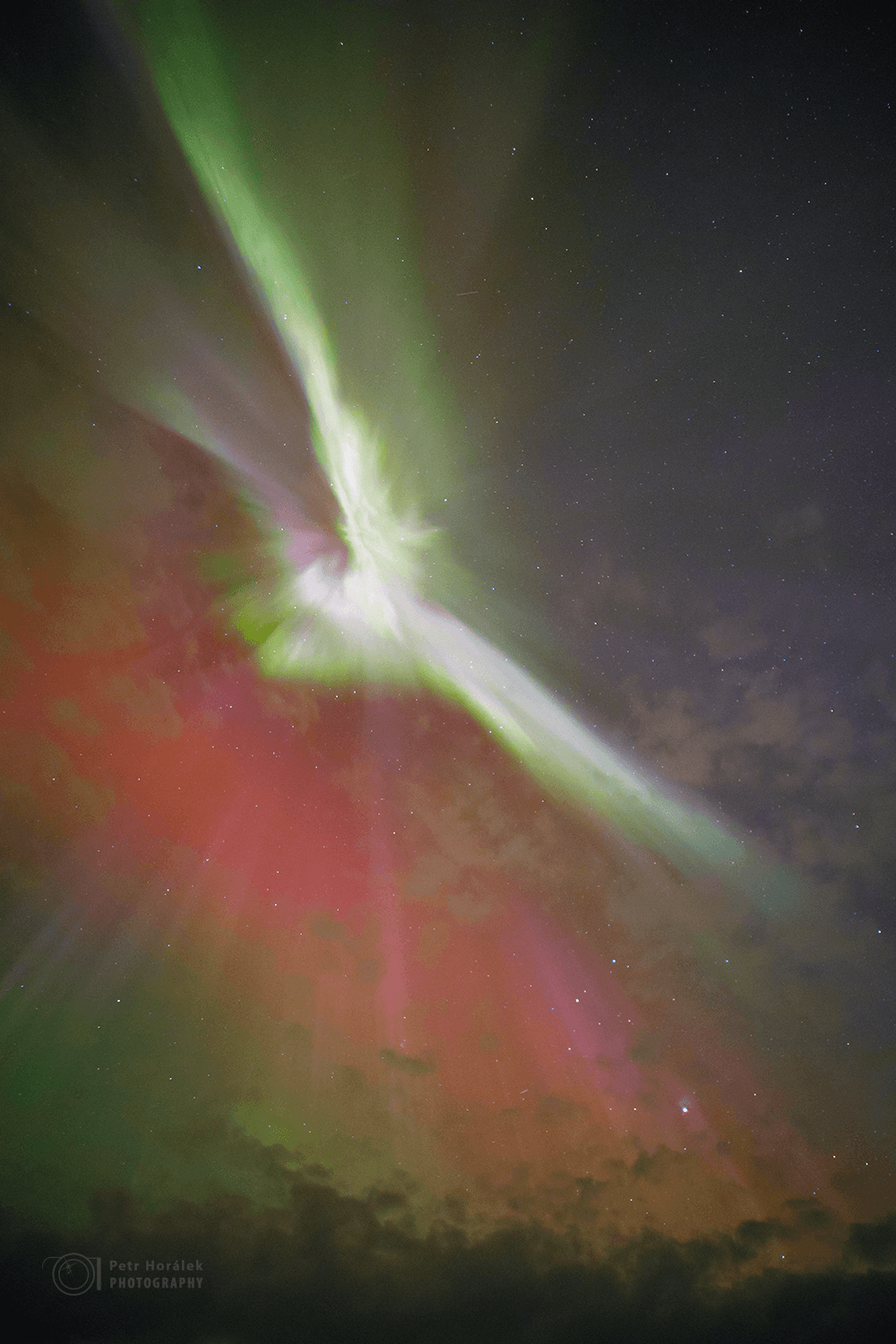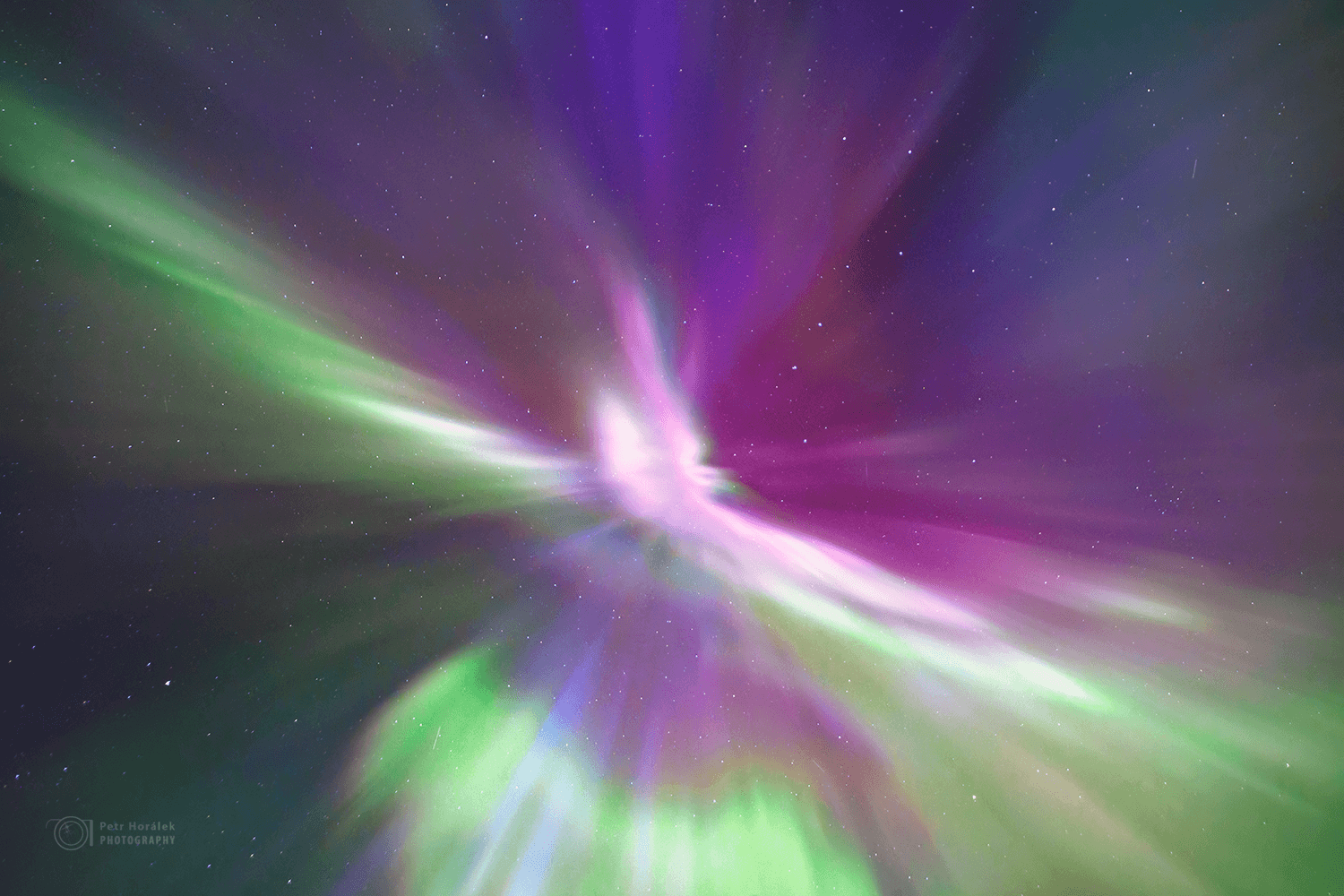 Všichni tak nějak tušíme, že to čekání spolu s těmi náhlými „vizuálními symptomy“ na nebi fakt vyžadují vynaložení zbytkové odolnosti. Kam koukat? Na sever? Na jih? Kde to začne? A co vlastně začne? Tyhle „symptomy“ zpravidla nahrávají jedinému: Možné vizuální explozi jevu v těchto končinách známému jako „subbouře“. Stojíme v kroužku, pomlouváme Dány, rekapitulujeme poslední hodiny dění a v tom najednou to vidím. Cíleně koukám už přes hodinu k jihu, pořád naděje střídá rozčarování při nemastné neslané aurorální aktivitě. Ale tohle, co teď vidím, je naprosto jednoznačné. V půli věty, už ani nevím jaké, se mi přímo před zrakem z neostrého pásu začínají zjevovat ostré sloupy, které do pár sekund extrémně zjasňují. „Hele, hele, hele,“ ukazuju se vzrušením všem, kteří jsou uvězněni v myšlenkovém proudu okolo dánské otázky. „Začíná to,“ hlásím nejdřív decentně. Ale hned vzápětí už razantně nekompromisně řvu do širého kraje: „Začíná subbouře! Kašlete na všechno, koukněte nahoru! Už to začíná!“ A vím proč: Tahle podívaná zpravidla trvá jen minuty a je nepředstavitelně dynamická!