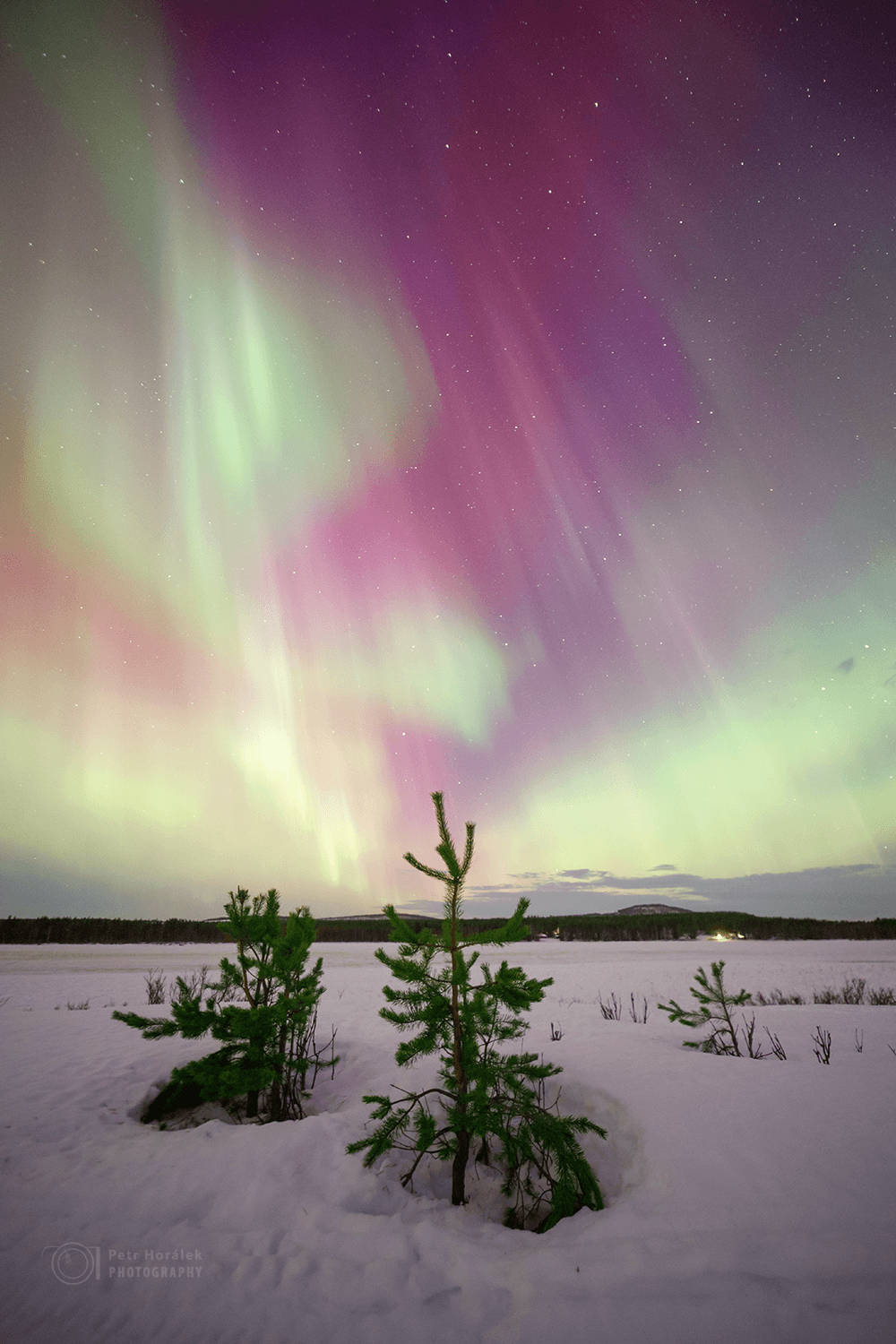„No, Péťo, nechejte to auto na parkovišti, sem nejezděte. Tady jsou normálně auta kompletně pod sněhem, my sami nevíme, jestli vyjedeme,“ volá Vojan a já – cestující v dodávce v závěsu za průzkumným osobákem – tuším, že to nebude taková idyla jako včera. To krásné místečko, které jsem u břehu jezera vybral, je sice blaženě odtržené od hlavní cesty, na níž každou chvíli vražedným pohledem proklínáte protijedoucí auto či kamion svítící vám do vašich foťáků, ale za cenu fakt nevlídné dostupnosti. Posádka dodávky tedy vyskakuje asi 500 metrů od cíle, vzduch je nepříjemně mrazivý a nebi už plně vládne majestátní polární záře. Ale ta kosa, to byste ani ledního medvěda z brlohu nevyhnali.